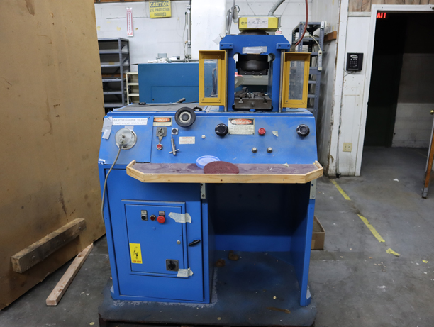 Dynamic Converting Systems, 1200 ton hydraulic coining press, CMC 230 ton hydraulic coining press, Serial #8109/10, Herman Schwabe model DF clicker press, Color-Dec Italy, Domes Machine 250m, epoxy doming dispensing machine, Model 250 M Lite D, Serial #48095, Imtran Pad Printer model PP-21, Imtran UV exposure unit for making pad printing plates, assorted pads and pad printing accessories, Autobag H-100 bagging machines, Ronci SpeeDip laqueur spinner, Model R-100, Link-O-Matic machines, fusion welding, Greco single barrel wet tumbler, Sweco Model FMD-10-2 Vibratory finishing machine, 10 cu ft., dry tumbling, Lanco filter press, Z&H OBI power press, Peopoly Phenom Resin 3d printer, Better Packages Model 55S electric shipping tape machines, Bridgeport 1 hp milling machine, Serial #19606, 32 inch table, Powermatic floor model drill press, model 1200, Craftsman lathe with 3 jaw chuck, 4 jaw chuck, Clausing surface grinder with 6x12 Walker magnetic chuck, Kalamazoo horizontal band saw, Binks spray booth with rotary table, spray gun, Charles A. Hones hardness furness, white metal 9” casting machine, white metal mold vulcanizer, Curtis Challenge Air, 5hp air compressor, New Holland spin dryer, Polishing bench with 2 motors, buffing wheels, polishing compounds, belt sanders, lap wheel polisher…